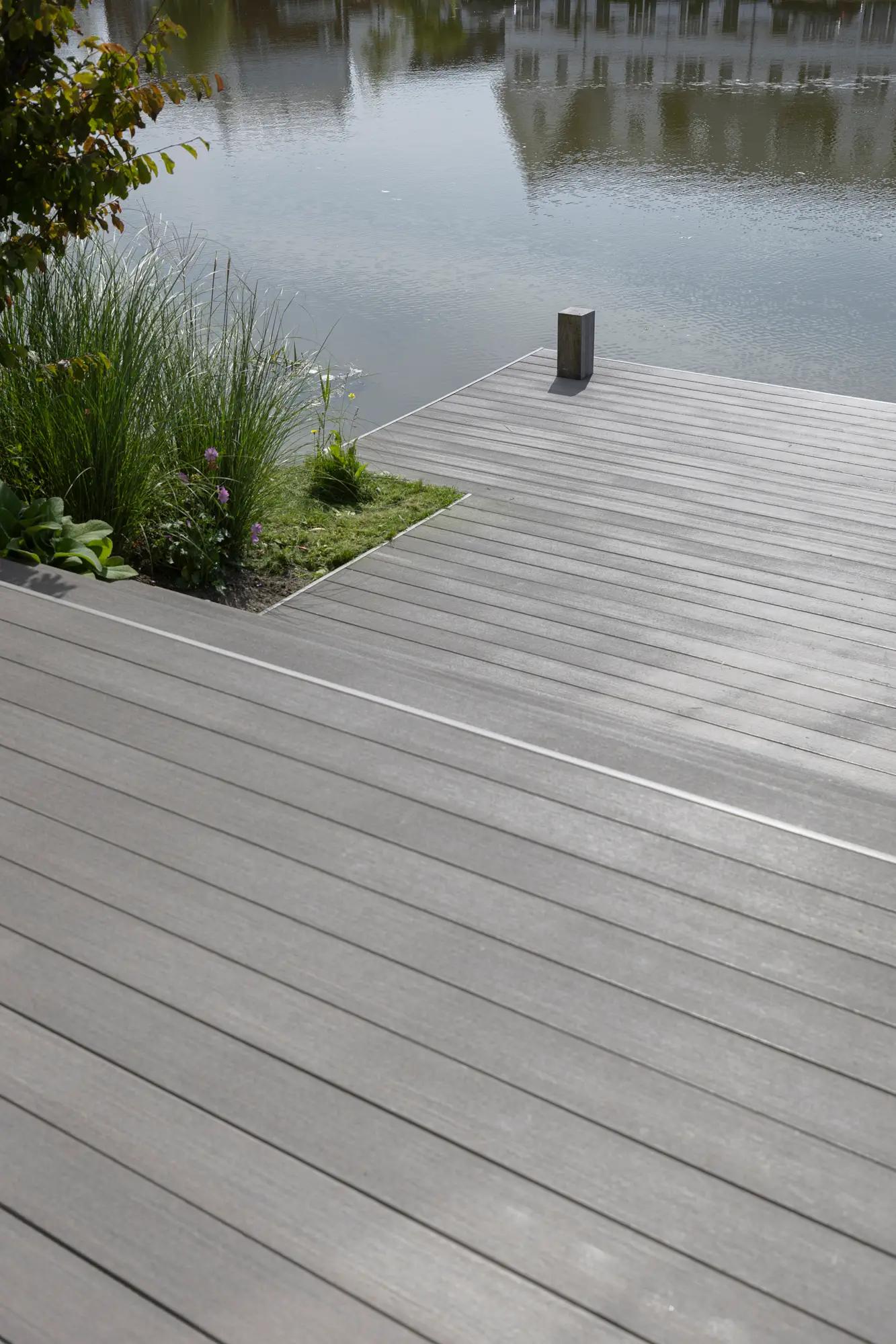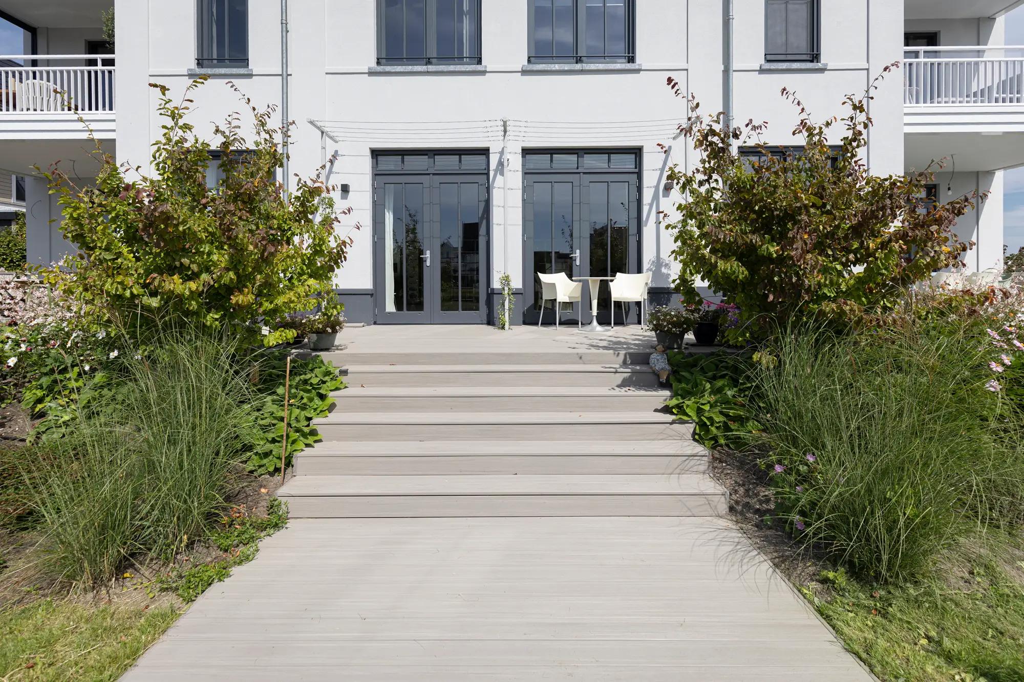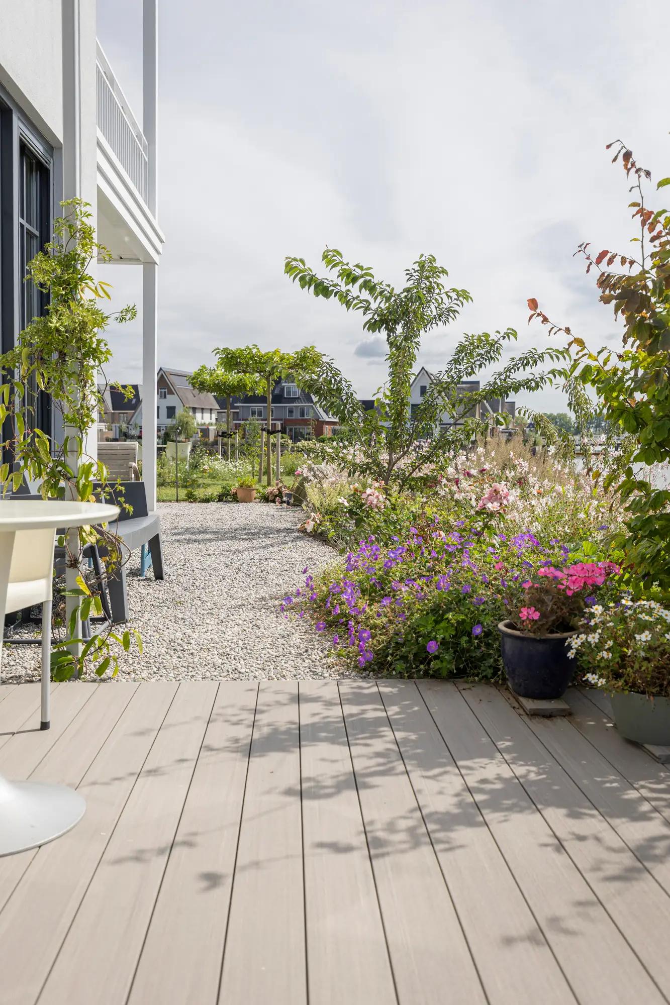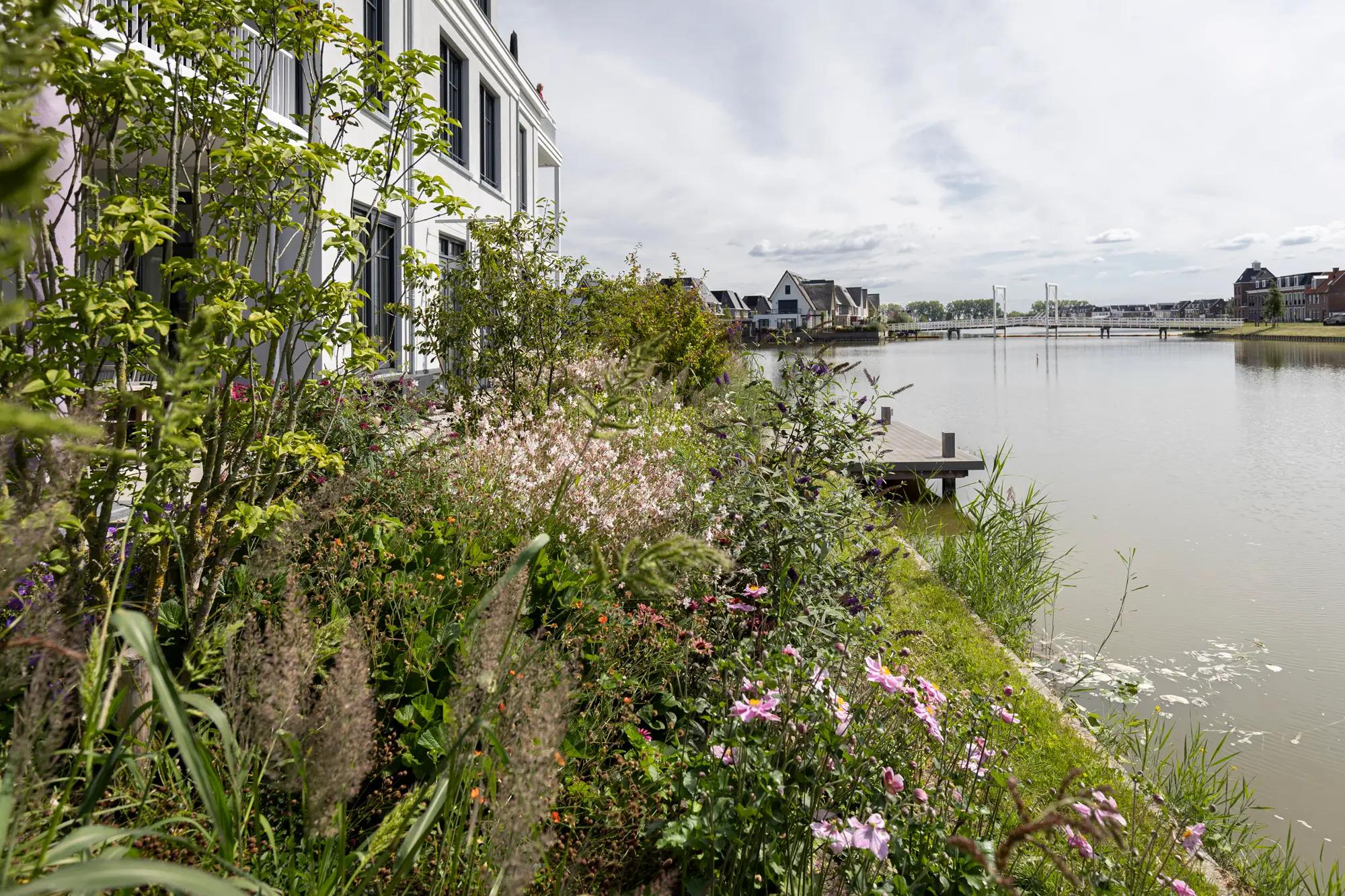 De bewoners van dit benedenappartement in de nieuwbouwwijk Weespersluis in Weesp benaderden ons voor het ontwerp en de aanleg van hun nieuwe tuin aan het water.