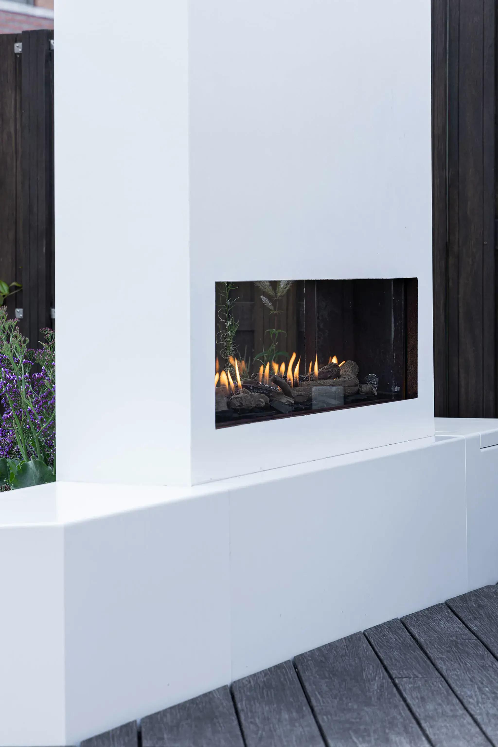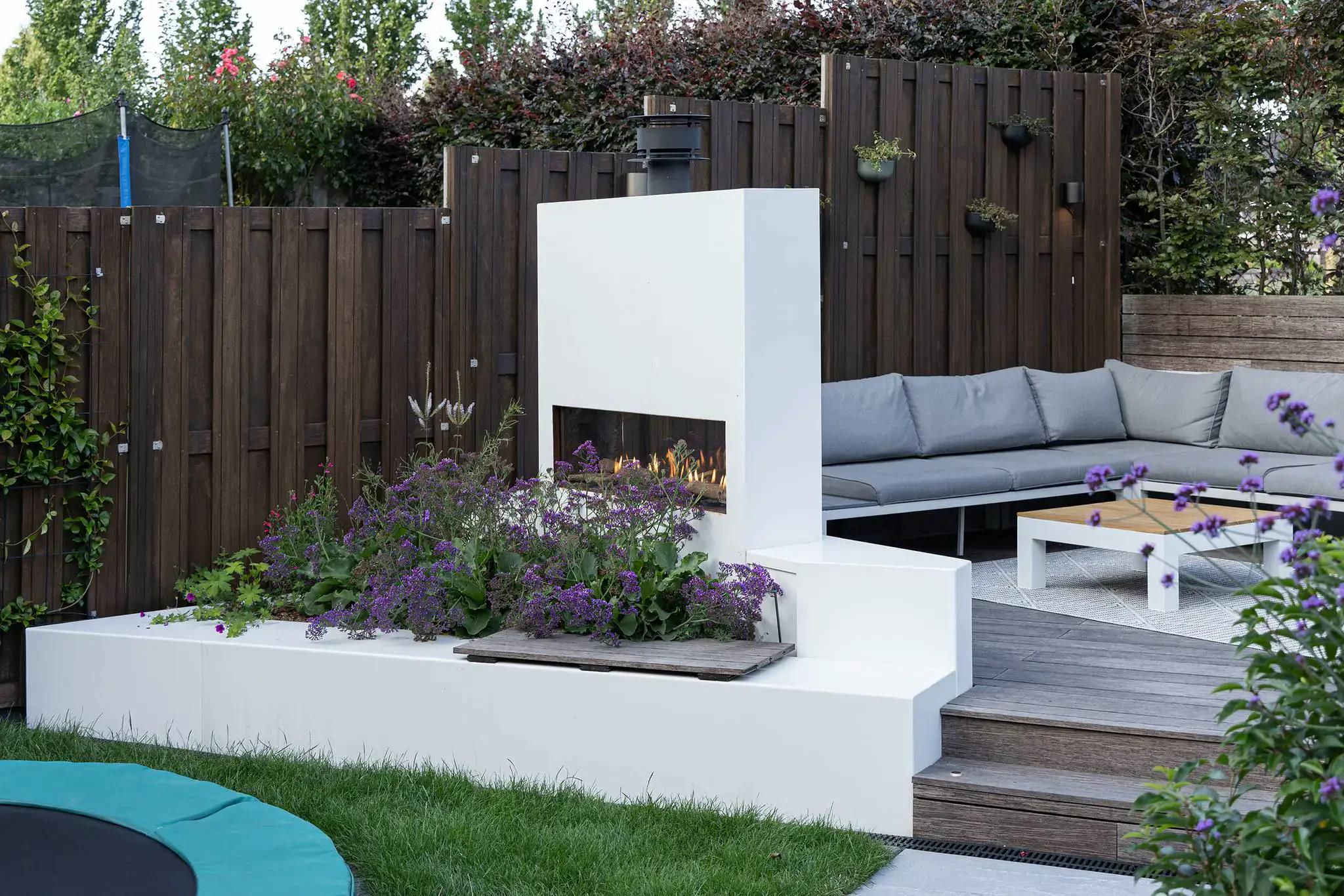 - Plaatsing van een tuinhaard bij avondzon terras.