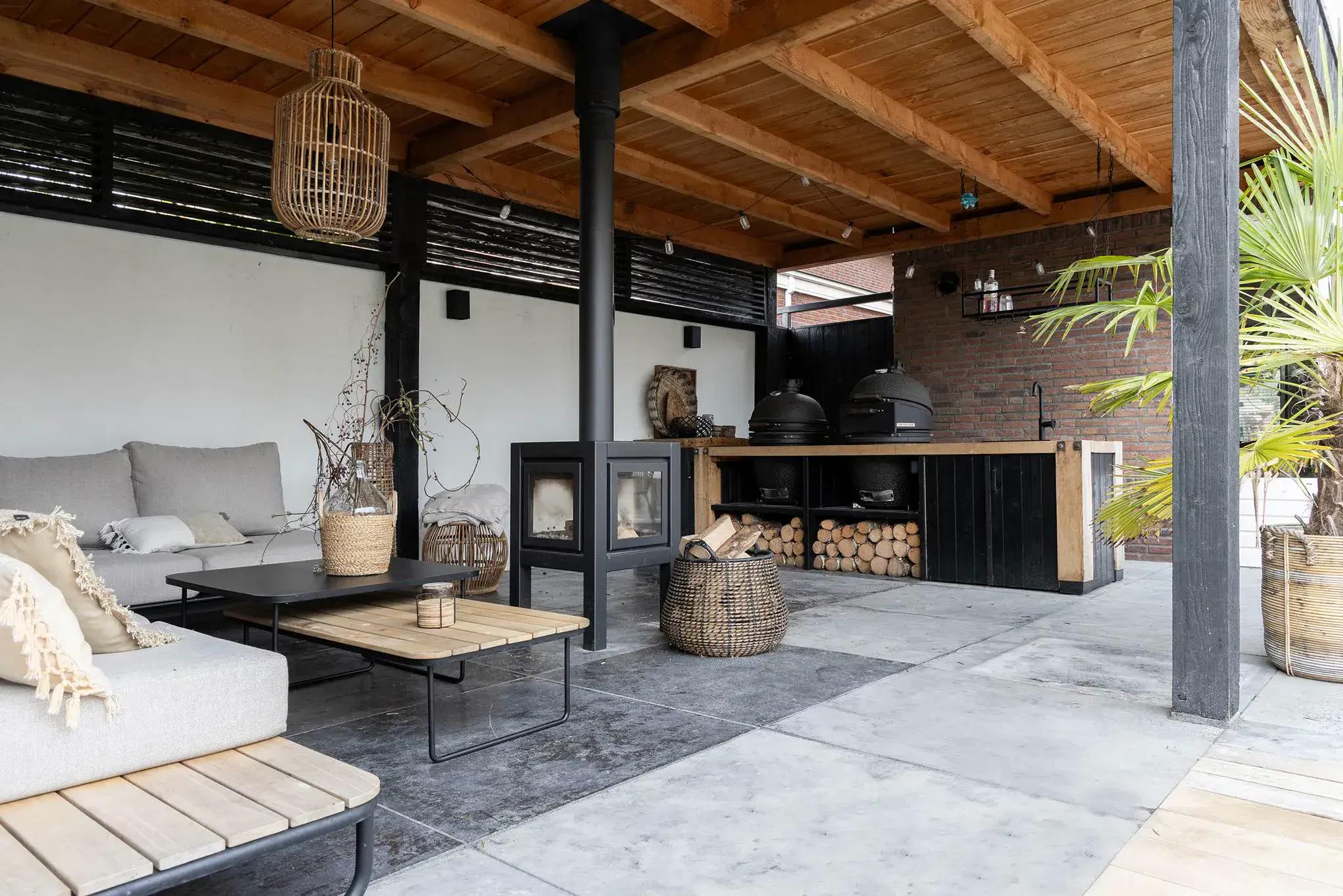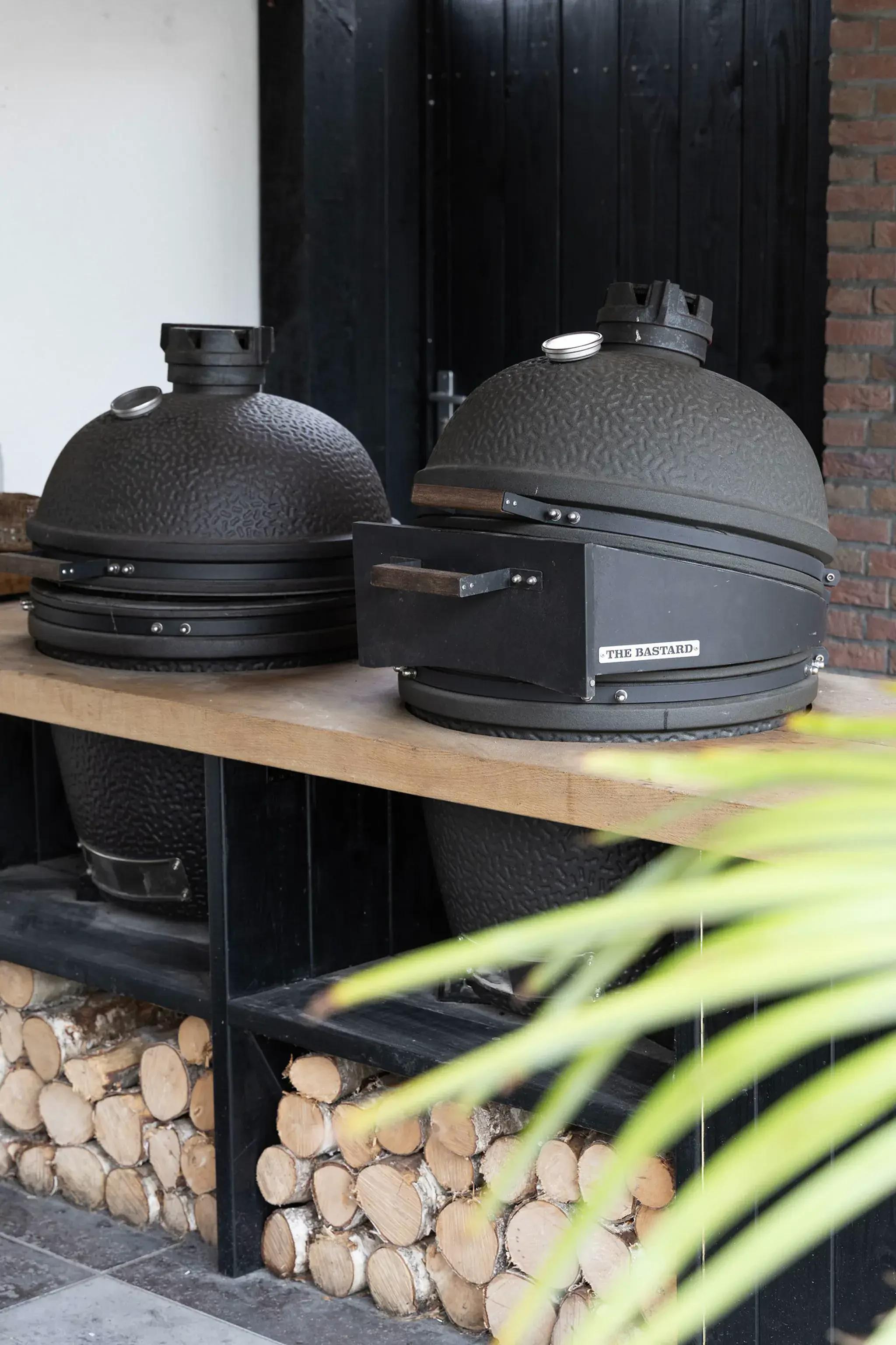 Daarnaast is er een buitenkeuken gerealiseerd met hierin niet één maar twee fantastische Black Bastard grills, een koelkast en een spoelbak met warm en koud water.